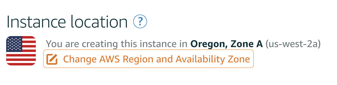 Choose the region for your instance. Under Instance Location click Change AWS Region and Availability Zone and select the eu-west-1 (Ireland) region.